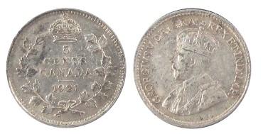 1921 5¢ ICCS EF40, well struck with some lustre, lightly toned. Rare and desirable.