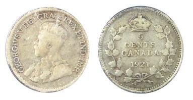 1921 5¢ ICCS VG10. A solid example with strong details