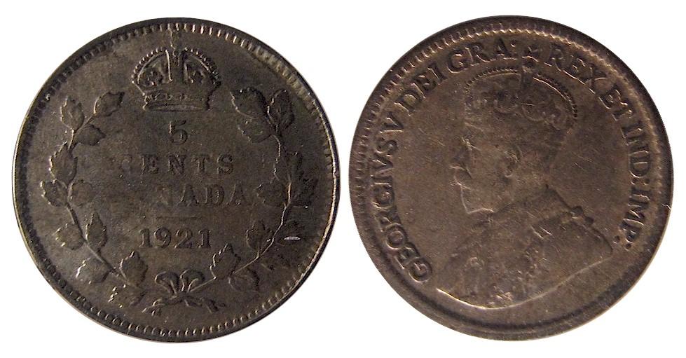 1921 5¢ ICCS VG10. Nice key issue with all clearly visible date.