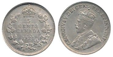 1921 5¢ PCGS EF45. The Prince of Canadian coins. White with nice details. Seldom seen in this condition.