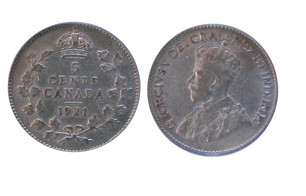 1921 5¢ PCGS XF45. Brilliant with some lustre. Scarce in this condition.