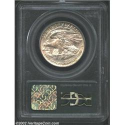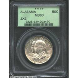 1921 50C Alabama 2x2 MS63 PCGS. The peripheral legends have traces of PVC residue. A faint die crack
