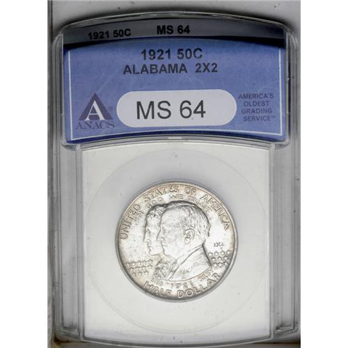 1921 50C Alabama 2x2 MS64 ANACS. A bold, frosty striki 1921[50C] Alabama 2x2 MS64 ANACS.