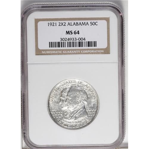 1921 50C Alabama 2x2 MS64 NGC. Choice and softly lustr