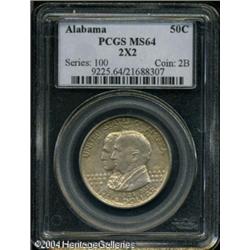 1921 50C Alabama 2x2 MS64 PCGS. Well struck and sa <B>1921 50C Alabama 2x2 MS64 PCGS.</B></I> Well struck and satiny, with slightly variegated pastel coloration, a die crack (as struck) that vertically bisects the eagle, and no distracting contact marks on either side of the coin. A very clean example of this scarce issue. <BR><BR><B>Important notice:</B> Heritage usually auctions material at the rate of 200-250 lots per hour. On some occasions eBay Live bid software or the Internet may not be able to keep up with the pace of the auction. We recommend placing a realistic absentee bid now as insurance to avoid disappointment. Occasionally the auctioneer may eliminate or reject an eBay Live bid, and the auctioneer may also reopen a lot after the close of the eBay live bidding (usually because we missed an audience bid), and may reject your bid even if it shows you as the winning bidder. By bidding via eBay Live, you agree that Heritage may award the lot to another bidder at its sole discretion under the circumstances described above or any other reasonable circumstances. Since eBay bids are not shown to us until we open the lot on the floor, we treat those bids just like floor bids. In most cases the floor responds before the eBay bid is presented to us, due to Internet lag time, so for consistency we have made it a policy that floor bids are always considered first over tie eBay live bids. Also please note that all Heritage lots purchased through eBay Live carry a 20% Buyer's Premium. Please make sure you read the Terms and Conditions before you bid. This lot is being auctioned in conjunction with a live floor auction by Heritage Galleries & Auctioneers. All final auction and invoice information will be supplied by Heritage Galleries & Auctioneers, and all other information should be considered preliminary. Lot:7842