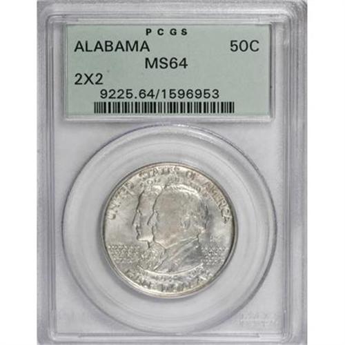 <B>1921 50C Alabama 2x2 MS64 PCGS.</B></I> PCGS Population (710/467). NGC Census: (671/395). Mintage: 6,006. Numismedia Wsl. Price for NGC/PCGS coin in MS64: $710. (#9225)<BR><BR><b>Shipping:</b> Coins & Currency (<a target="_blank" href="http://www.heritageauctions.com/common/shipping.php">view shipping information</a>)