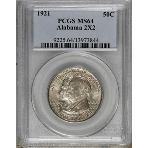 <B>1921 50C Alabama 2x2 MS64 PCGS.</B></I> . PCGS Population (714/465). NGC Census: (671/397). Mintage: 6,006. Numismedia Wsl. Price for NGC/PCGS coin in MS64: $710. (#9225)<BR><BR><b>Shipping:</b> Coins & Currency (<a target="_blank" href="http://www.heritageauctions.com/common/shipping.php">view shipping information</a>)