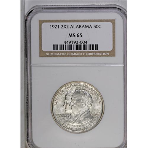 <B>1921<50C> Alabama 2x2 MS65 NGC.</B></I> This is a wonderful Gem with frosty silver luster and no evidence of toning on either side. This is an important commemorative half dollar issue that is seldom encountered in Gem quality.
