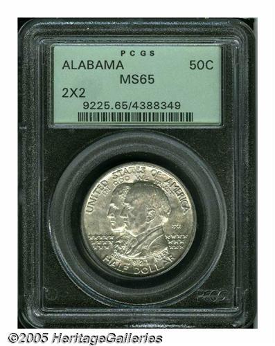 <B>1921<50C> Alabama 2x2 MS65 PCGS.</B></I> The Alabama 2x2 is a scarce, low mintage commemorative issue not often found in Gem condition. This example is untoned, with lovely satin luster, and exhibits just a few minute contact marks.