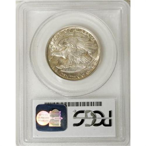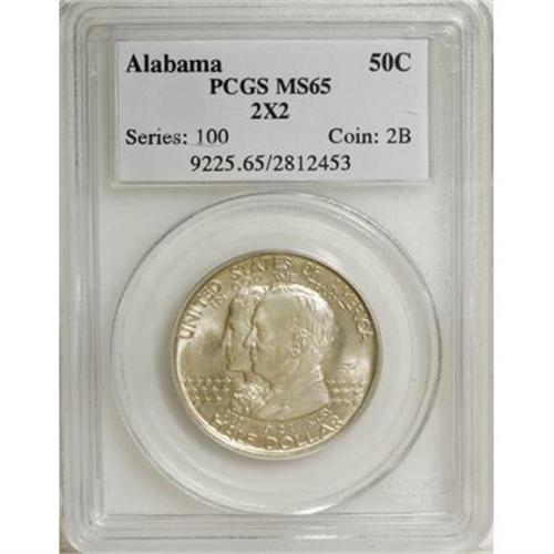 <B>1921 50C Alabama 2x2 MS65 PCGS.</B></I> A well struck and softly lustrous Gem example of this lower-mintage Alabama variant, carefully preserved with a measure of delicate golden-tan toning over each side. The use of the 2x2 to create multiple varieties within the same design was one of the earliest examples of what would become a favorite tactic of promoters.<BR><BR><b>Shipping:</b> Coins & Currency (<a target="_blank" href="http://www.heritageauctions.com/common/shipping.php">view shipping information</a>)