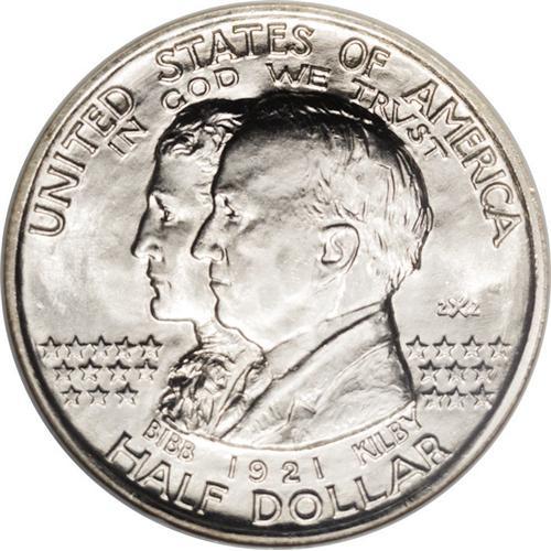 <B>1921<50C> Alabama 2x2 MS66 NGC.</B></I> The 1921 Alabama 2x2 represents a difficult issue to locate in MS65, and coins, such as this one that grade finer, are particularly elusive and desirable. This is a beautiful Gem with smooth, lustrous surfaces that are well struck and completely brilliant. A few minor slidemarks on Kilby's cheek are too trivial to be of any consequence. A bright, premium quality example, this coin has all of the eye appeal that one could ever expect from an untoned silver commemorative, and is highly desirable based upon both technical and visual considerations. Census: 48 in 66, 1 finer (4/06).