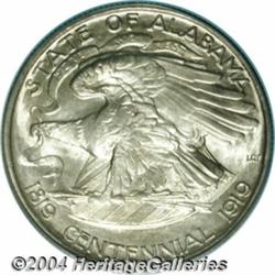 <table><tr><td><table><tr><td>1921 50C Alabama 2x2 MS66 PCGS. The obverse field has light apricot patina, while the devices have gentle lilac hues; the reverse is essentially brilliant. Well struck, which is uncommon for the issue as the eagle often has ill-defined central plumage detail. A thin vertical die crack bisects the eagle. A lustrous and virtually pristine Gem. A truly exceptional Commemorative. Population: 50 in 66, 4 finer (3/04).From the Pleasant Valley Collection. <BR><BR><B>Important notice:</B> Heritage usually auctions material at the rate of 200-250 lots per hour. On some occasions eBay Live bid software or the Internet may not be able to keep up with the pace of the auction. We recommend placing a realistic absentee bid now as insurance to avoid disappointment. Occasionally the auctioneer may eliminate or reject an eBay Live bid, and the auctioneer may also reopen a lot after the close of the eBay live bidding (usually because we missed an audience bid), and may reject your bid even if it shows you as the winning bidder. By bidding via eBay Live, you agree that Heritage may award the lot to another bidder at its sole discretion under the circumstances described above or any other reasonable circumstances. Since eBay bids are not shown to us until we open the lot on the floor, we treat those bids just like floor bids. In most cases the floor responds before the eBay bid is presented to us, due to Internet lag time, so for consistency we have made it a policy that floor bids are always considered first over tie eBay live bids. Also please note that all Heritage lots purchased through eBay Live carry a 20% Buyer's Premium. Please make sure you read the Terms and Conditions before you bid. <BR><BR><B>IMPORTANT ANNOUNCEMENT ABOUT RESERVES:</B> Heritage now divulges all reserves on its web site 7 days before every auction. If you want to know whether the reserve on this lot has been met, and if not, what the reserve amount is, please visit this lot page on the HeritageCoin.com web site, or email: bid@HeritageGalleries.com </span></font></td></tr></table></td></tr></table>