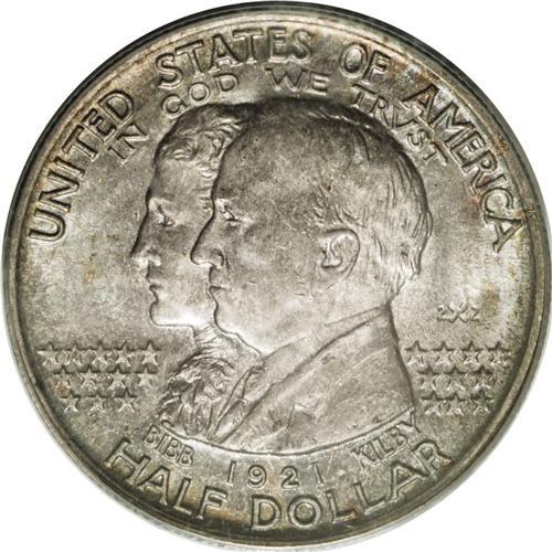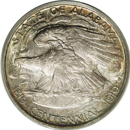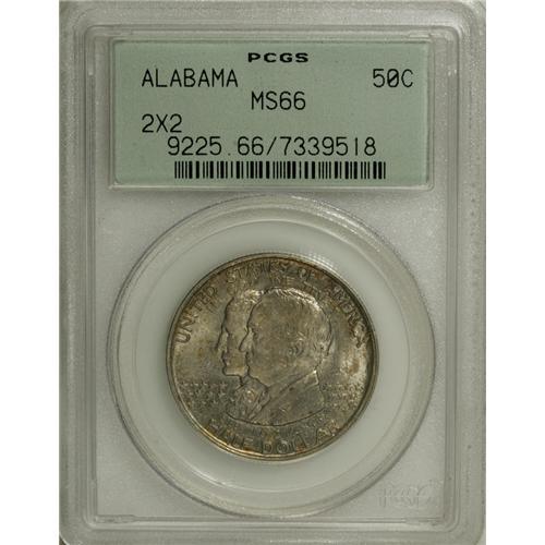 <B>1921 50C Alabama 2x2 MS66 PCGS.</B></I> This Premium Gem is sharply struck with deep steel color on both sides, accented by bright gold and iridescent toning. The underlying surfaces have frosty mint luster. A splendid example of this early commemorative variety with few peers. Population: 63 in 66, 5 finer (1/07).<BR><BR><b>Shipping:</b> Coins & Currency (<a target="_blank" href="http://www.heritageauctions.com/common/shipping.php">view shipping information</a>)