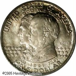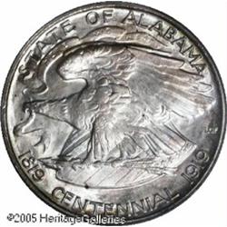 <B>1921 50C Alabama 2x2 MS67 PCGS.</B></I> Although the 2x2 issue was better produced than its No 2x2 counterpart, it is nonetheless unusual to find any Alabama Half Dollar with the sharpness of strike seen on the present Superb Gem. The eagle's plumage on the legs and body is fully brought up by the dies, and only the right (facing) claw lacks pinpoint definition. Just 6,006 pieces were struck with 2x2 on the dies, the extra six pieces intended for assay. The X represents the St. Andrews cross from the state flag; the gimmick of adding the state number to create an additional low mintage variety was also used by the 1921 Missouri type. Lightly toned in apricot, lilac, and sea-green hues, this lustrous and splendidly preserved piece merits its status as one of the finest certified Alabama 2x2 Halves. Population: 4 in 67, 0 finer (1/05).<BR><I>From the Bruce Scher #1 All-Time PCGS Registry Set.</B></I> Lot:4141