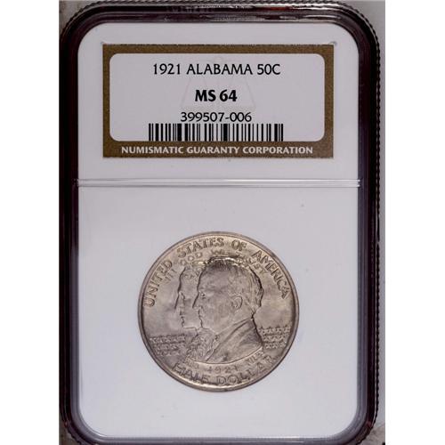 <B>1921<50C> Alabama MS64 NGC.</B></I> Sharply struck and fully lustrous with frosty silver surfaces beneath deep champagne toning. A lovely example for the grade.