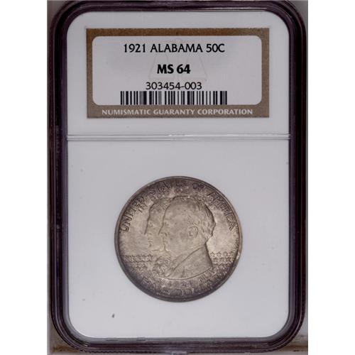 1921 50C Alabama MS64 NGC. The satiny mint frost this 1921[50C] Alabama MS64 NGC.