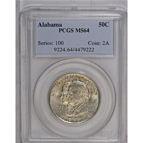 <B>1921<50C> Alabama MS64 PCGS.</B></I> Choice and sharply struck with mostly untoned surfaces. This lustrous piece would be a Gem if not for a significant abrasion on Kilby's cheek.