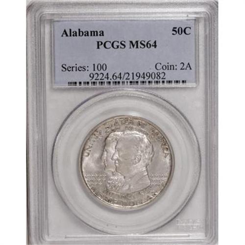 <B>1921 50C Alabama MS64 PCGS.</B></I> PCGS Population (797/493). NGC Census: (735/376). Mintage: 59,038. Numismedia Wsl. Price for NGC/PCGS coin in MS64: $540. (#9224)<BR><BR><b>Shipping:</b> Coins & Currency (<a target="_blank" href="http://www.heritageauctions.com/common/shipping.php">view shipping information</a>)