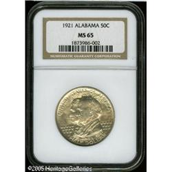 <B>1921 50C Alabama MS65 NGC.</B></I> Brilliant surfaces are fully lustrous, and exhibit sharply struck design elements. Some light marks on Kilby's face are noted for the sake of accuracy. Lot:8424