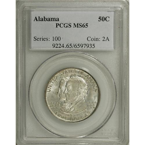 <B>1921 50C Alabama MS65 PCGS.</B></I> Softly lustrous and well struck with pretty ice-blue and violet patina over each side. Aside from a minuscule mark on Kilby's jawline, the portraits are clean.<BR><BR><b>Shipping:</b> Coins & Currency (<a target="_blank" href="http://www.heritageauctions.com/common/shipping.php">view shipping information</a>)