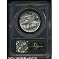 <B>1921<50C> Alabama MS65 PCGS.</B></I> Brilliant, essentially untoned surfaces that are virtually free of any significant abrasions. The design elements are sharply struck throughout. <BR><BR><B>Important notice:</B> Heritage usually auctions material at the rate of 200-250 lots per hour. On some occasions eBay Live bid software or the Internet may not be able to keep up with the pace of the auction. We recommend placing a realistic absentee bid now as insurance to avoid disappointment. Occasionally the auctioneer may eliminate or reject an eBay Live bid, and the auctioneer may also reopen a lot after the close of the eBay live bidding (usually because we missed an audience bid), and may reject your bid even if it shows you as the winning bidder. By bidding via eBay Live, you agree that Heritage may award the lot to another bidder at its sole discretion under the circumstances described above or any other reasonable circumstances. Since eBay bids are not shown to us until we open the lot on the floor, we treat those bids just like floor bids. In most cases the floor responds before the eBay bid is presented to us, due to Internet lag time, so for consistency we have made it a policy that floor bids are always considered first over tie eBay live bids. Also please note that all Heritage lots purchased through eBay Live carry a 20% Buyer's Premium. Please make sure you read the Terms and Conditions before you bid. </span></font></tr></table></td></tr></table>