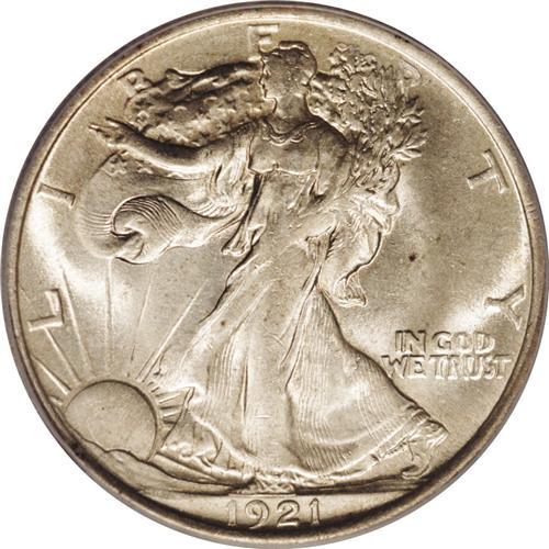 <B>1921 50C MS63 ICG.</B></I> A sparkling-white coin that is essentially untoned. The strike is soft at the center of both sides, rather typical for this issue. Minor abrasions are found on the highpoints, while the open fields are cleaner. The mintage of 246,000 pieces makes these scarce in all grades, and most of these spent many years in circulation before being saved. Always in strong demand as one of the key dates to this series, and the present coin would make a welcome addition to most date collections.