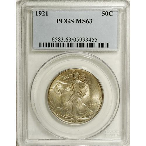 <B>1921 50C MS63 PCGS.</B></I> In years when an inordinate amount of attention is given a particular denomination, production of others often has a tendency to be reduced. This scenario certainly occurred in 1921 when mintages of dimes, quarters, and halves were cut dramatically or eliminated altogether in favor of a needless silver dollar windfall. This elusive P-mint Walker is satiny and especially bold beneath olive-gold patina.<BR><BR><b>Shipping:</b> Coin/Currency (<a target="_blank" href="http://www.heritageauctions.com/common/shipping.php">view shipping information</a>)