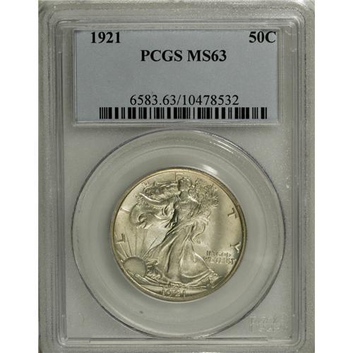 <B>1921 50C MS63 PCGS.</B></I> Radiant luster pervades both sides of this enticing example, with silver-white, untoned surfaces and excellent eye appeal. While a few stray undistracting abrasions confirm the Select grade, the strike is considerably better than usual through the centers; Liberty's thumb and the adjacent branches are strongly delineated. A nice piece for the grade, and deserving of strong bidding.<BR><BR><b>Shipping:</b> Coins & Currency (<a target="_blank" href="http://www.heritageauctions.com/common/shipping.php">view shipping information</a>)