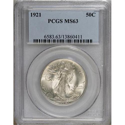 <B>1921 50C MS63 PCGS.</B></I> In his discussion of the 1921 half dollar, Bruce Fox (1993) says: "Even experts have difficulty agreeing on its availability. It does have the second lowest mintage of the series and is obviously rare on this basis alone." This Select specimen is virtually untoned with vibrant luster. The strike brings out good definition, except for softness in the center areas. A few scattered tiny marks limit the grade.<BR><BR><B>Coin Engraver:</B> Adolph A. Weinman<BR><BR><b>Shipping:</b> Coins & Currency (<a target="_blank" href="http://www.heritageauctions.com/common/shipping.php">view shipping information</a>\)