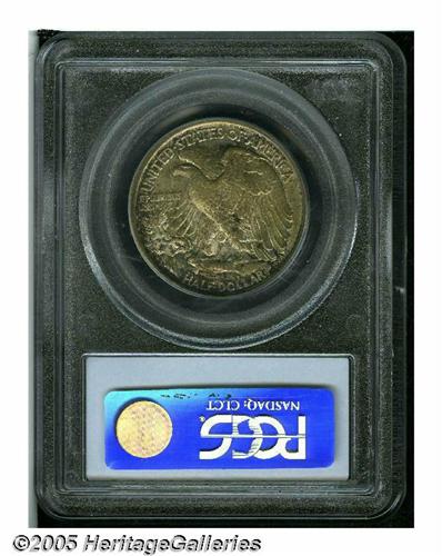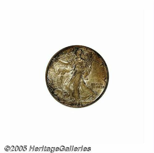 <B>1921<50C> MS64 PCGS.</B></I> Only 246,000 pieces were struck of the 1921, the lowest mintage Philadelphia-mint Walking Liberty half in the series. While scarcer in circulated grades than the 1921-S, the 1921-P is nowhere near as difficult in the better grades of Uncirculated. This is a particularly pleasing and obviously original coin. The devices are sharply struck in all areas and the mint luster is softly frosted beneath the toning. And it is the toning that really sets this coin apart. Rich olive-brown coloration covers each side and deepens significantly around the margins. An outstanding 1921 that closely resembles a full Gem coin. Population: 91 in 64, 64 finer (6/05).
