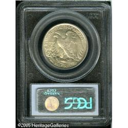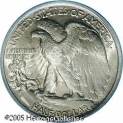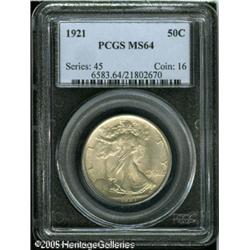 <B>1921 50C MS64 PCGS.</B></I> The Philadelphia mint produced just 246,000 Half Dollars in 1921, a total that is the second lowest in the entire Walking Liberty series. Of the rarity of high grade examples, Fox states: "Although I have seen many nicely struck and a few fully struck specimens, I have difficulty locating pieces having a near full strike with few enough abrasions to grade MS64 or higher." Based on this assessment, one glance at the present near-Gem will be enough to convince anyone that it is an important coin. The strike is quite sharp with minimal softness on Liberty's leg and hand, and bold detail on her head. Both sides are silver-gray in appearance, although certain angles reveal rose and tan tinged highlights. For pedigree purposes, one abrasion is noted on Liberty's breast. A coin that is earmarked for inclusion in a high grade set of Walking Liberty Halves.<BR><I>From The William & Harrison Hiatt Registry Collection, Part Two.</B></I> Lot:7982