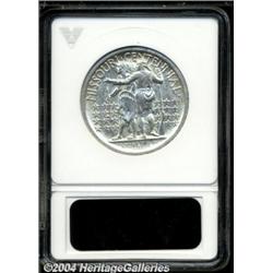 <B>1921<50C> Missouri 2x4 MS62 ANACS.</B></I> The bright, essentially untoned surfaces are devoid of any significant contact marks. Apparently the grade is based on some small insignificant abrasions on the face of the frontiersman on the obverse, and on the jacket of the reverse frontiersman. The coin is sharply struck throughout, and may have legitimate claims to a higher grade. <BR><BR><B>Important notice:</B> Heritage usually auctions material at the rate of 200-250 lots per hour. On some occasions eBay Live bid software or the Internet may not be able to keep up with the pace of the auction. We recommend placing a realistic absentee bid now as insurance to avoid disappointment. Occasionally the auctioneer may eliminate or reject an eBay Live bid, and the auctioneer may also reopen a lot after the close of the eBay live bidding (usually because we missed an audience bid), and may reject your bid even if it shows you as the winning bidder. By bidding via eBay Live, you agree that Heritage may award the lot to another bidder at its sole discretion under the circumstances described above or any other reasonable circumstances. Since eBay bids are not shown to us until we open the lot on the floor, we treat those bids just like floor bids. In most cases the floor responds before the eBay bid is presented to us, due to Internet lag time, so for consistency we have made it a policy that floor bids are always considered first over tie eBay live bids. Also please note that all Heritage lots purchased through eBay Live carry a 20% Buyer's Premium. Please make sure you read the Terms and Conditions before you bid.