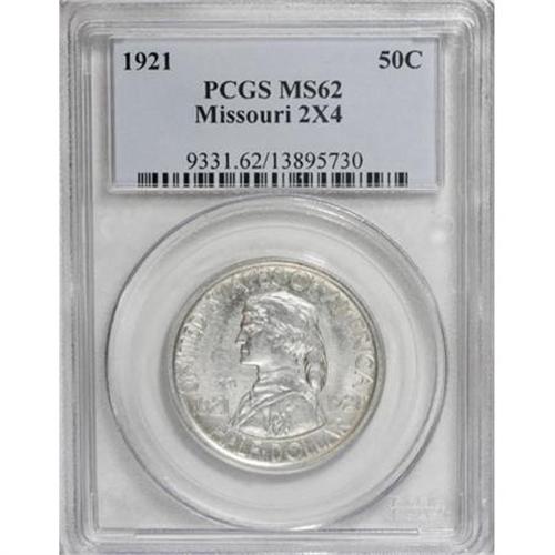 <B>1921 50C Missouri 2x4 MS62 PCGS.</B></I> PCGS Population (167/1319). NGC Census: (80/1314). Mintage: 5,000. Numismedia Wsl. Price for NGC/PCGS coin in MS62: $655. (#9331)<BR><I>From The Frank DuVall Collection of U.S. Commemoratives.</B></I><BR><BR><b>Shipping:</b> Coins & Currency (<a target="_blank" href="http://www.heritageauctions.com/common/shipping.php">view shipping information</a>)