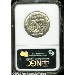 <B>1921 50C Missouri 2x4 MS63 NGC.</B></I> Typically struck, satiny, and untoned, with minimally marked surfaces that have a faintly matte-like texture to the fields. One of the more popular of the silver commemorative types.