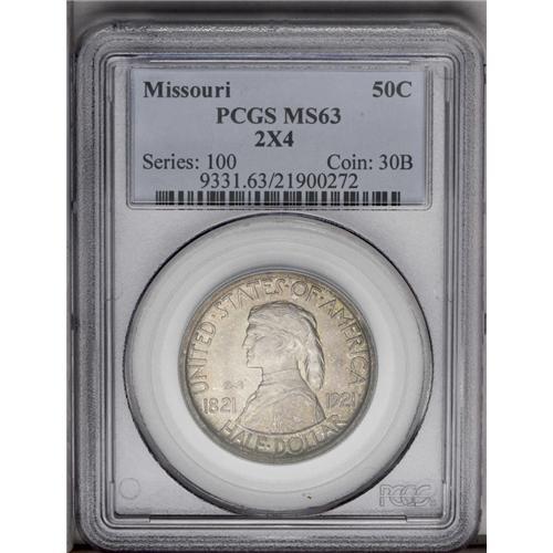 1921 50C Missouri 2x4 MS63 PCGS. Subtle olive-green an 1921[50C] Missouri 2x4 MS63 PCGS.