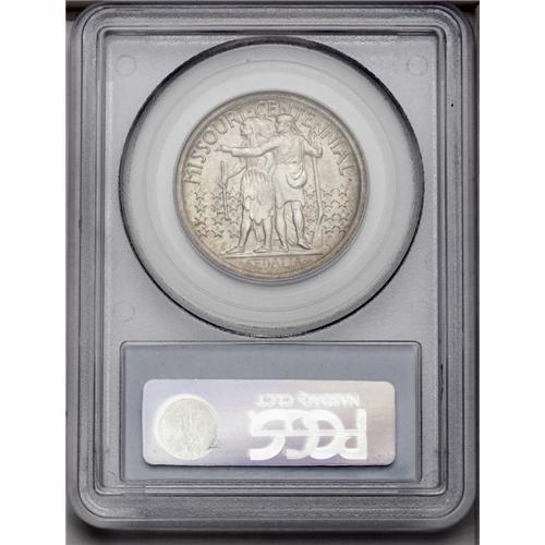 <B>1921<50C> Missouri 2x4 MS63 PCGS.</B></I> Subtle olive-green and mauve patina races over lustrous surfaces. A few minute marks on the cheek of the obverse motif and on the back of the frontiersman limit the grade. The design features are well struck throughout.