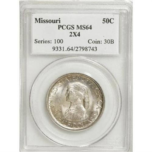 <B>1921 50C Missouri 2x4 MS64 PCGS.</B></I> Pastel gold and violet patina rests on the radiantly lustrous surfaces of this near-Gem Missouri commemorative, and a well directed strike brings out sharp definition on the design elements. A few minuscule marks visible under magnification limit the grade. David Bowers (1991) notes that the special "2x4" in the field was apparently the idea of one James Montgomery, chairman of the Missouri Centennial Exposition. The purpose was to place this notation on the first 5,000 coins struck which would be sold "... for a sufficient profit to pay the expense of model and die ... ."<BR><BR><b>Shipping:</b> Coins & Currency (<a target="_blank" href="http://www.heritageauctions.com/common/shipping.php">view shipping information</a>)