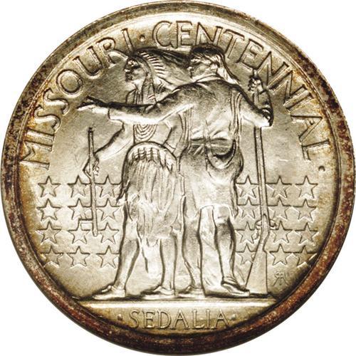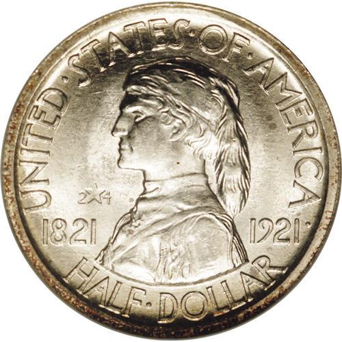 <B>1921<50C> Missouri 2x4 MS65 NGC.</B></I> Superior mint luster characterizes this incredible Missouri half. Most of the original mint brilliance is still in evidence although the reverse exhibits a peripheral ring of golden-russet patina. Smooth and attractive overall.