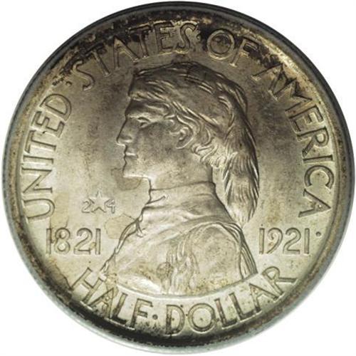 <B>1921 50C Missouri 2x4 MS65 PCGS.</B></I> Deep russet toning clings to portions of the borders, while the interiors are lightly graced with tan and silver-gray color. This satiny and unblemished Gem has a crisp strike and an original appearance. The Missouri type is among the scarcest, with or without the 2x4 above the date, although the latter is more coveted due to its small emission of 5,000 pieces.<BR><BR><b>Shipping:</b> Coins & Currency (<a target="_blank" href="http://www.heritageauctions.com/common/shipping.php">view shipping information</a>)