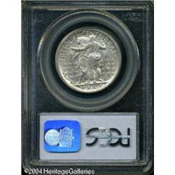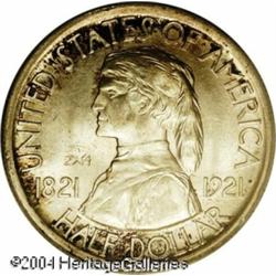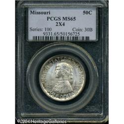 1921 50C Missouri 2x4 MS65 PCGS. Exceedingly lustr <B>1921 50C Missouri 2x4 MS65 PCGS.</B></I> Exceedingly lustrous with a generally untoned appearance over each side. A smattering of deep russet color is seen about the obverse border. One could hardly dispute the Gem status of this frosty, boldly struck Missouri 2x4 Half. <BR><BR><B>Important notice:</B> Heritage usually auctions material at the rate of 200-250 lots per hour. On some occasions eBay Live bid software or the Internet may not be able to keep up with the pace of the auction. We recommend placing a realistic absentee bid now as insurance to avoid disappointment. Occasionally the auctioneer may eliminate or reject an eBay Live bid, and the auctioneer may also reopen a lot after the close of the eBay live bidding (usually because we missed an audience bid), and may reject your bid even if it shows you as the winning bidder. By bidding via eBay Live, you agree that Heritage may award the lot to another bidder at its sole discretion under the circumstances described above or any other reasonable circumstances. Since eBay bids are not shown to us until we open the lot on the floor, we treat those bids just like floor bids. In most cases the floor responds before the eBay bid is presented to us, due to Internet lag time, so for consistency we have made it a policy that floor bids are always considered first over tie eBay live bids. Also please note that all Heritage lots purchased through eBay Live carry a 20% Buyer's Premium. Please make sure you read the Terms and Conditions before you bid. This lot is being auctioned in conjunction with a live floor auction by Heritage Galleries & Auctioneers. All final auction and invoice information will be supplied by Heritage Galleries & Auctioneers, and all other information should be considered preliminary. Lot:7912