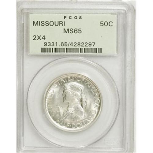 <B>1921 50C Missouri 2 S4 MS65 PCGS.</B></I> Delicate caramel-gold patina enriches this lustrous, nicely struck, and carefully preserved example. Along with the Alabama, the Missouri was the first commemorative program to create an additional variety by adding a symbol to the field. The 2 S4 in the field indicates Missouri was the 24th state to join the union. Certified in a green label holder.<BR><I>From The Sterling Collection.</B></I><BR><BR><b>Shipping:</b> Coins & Currency (<a target="_blank" href="http://www.heritageauctions.com/common/shipping.php">view shipping information</a>)
