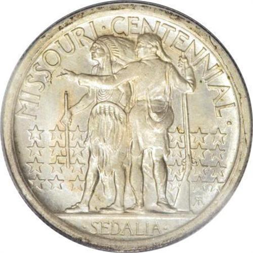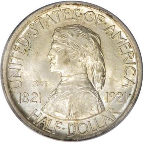<B>1921 50C Missouri 2x4 MS65 PCGS. CAC.</B></I> While the 2x4 Missouri variant has a slightly lower mintage than its "plain" counterpart, the 2x4 has a slightly better survival rate in better Mint State grades, since the "plain" variety saw significant sales to non-numismatists. Nonetheless, both varieties are prized in Gem. This survivor has soft, pleasing luster beneath soft silver-gray patina that displays elements of blue and rose. The portrait has pleasing definition, though the frontiersman's shoulder exhibits weakness. PCGS has graded 25 finer pieces (1/08).<BR><I>From The Southwest Collection.</B></I><BR><BR><b>Shipping:</b> Coins & Currency (<a target="_blank" href="http://www.heritageauctions.com/common/shipping.php">view shipping information</a>)