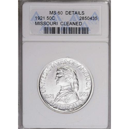 1921 50C Missouri--Cleaned--ANACS. MS60 Details. The c 1921[50C] Missouri--Cleaned--ANACS. MS60 Deta
