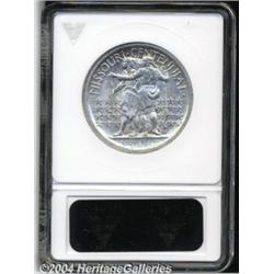 <table><tr><td><table><tr><td>1921 50C Missouri MS62 ANACS. Subtle hints of light blue, lavender, and gold toning grace bright surfaces that are seemingly free of abrasions. A small area of dark toning is noted in the field beneath the bust of the frontiersman and around the upper parts of LL in DOLLAR. Despite a couple of localized weak spots, this conservatively graded specimen generally shows nice design detail. <BR><BR><B>Important notice:</B> Heritage usually auctions material at the rate of 200-250 lots per hour. On some occasions eBay Live bid software or the Internet may not be able to keep up with the pace of the auction. We recommend placing a realistic absentee bid now as insurance to avoid disappointment. Occasionally the auctioneer may eliminate or reject an eBay Live bid, and the auctioneer may also reopen a lot after the close of the eBay live bidding (usually because we missed an audience bid), and may reject your bid even if it shows you as the winning bidder. By bidding via eBay Live, you agree that Heritage may award the lot to another bidder at its sole discretion under the circumstances described above or any other reasonable circumstances. Since eBay bids are not shown to us until we open the lot on the floor, we treat those bids just like floor bids. In most cases the floor responds before the eBay bid is presented to us, due to Internet lag time, so for consistency we have made it a policy that floor bids are always considered first over tie eBay live bids. Also please note that all Heritage lots purchased through eBay Live carry a 20% Buyer's Premium. Please make sure you read the Terms and Conditions before you bid. <BR><BR><B>IMPORTANT ANNOUNCEMENT ABOUT RESERVES:</B> Heritage now divulges all reserves on its web site 7 days before every auction. If you want to know whether the reserve on this lot has been met, and if not, what the reserve amount is, please visit this lot page on the HeritageCoin.com web site, or email: bid@HeritageGalleries.com </span></font></td></tr></table></td></tr></table>