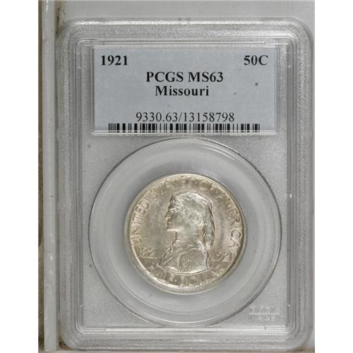 1921 50C Missouri MS63 PCGS. A trace of zinfandel toni
