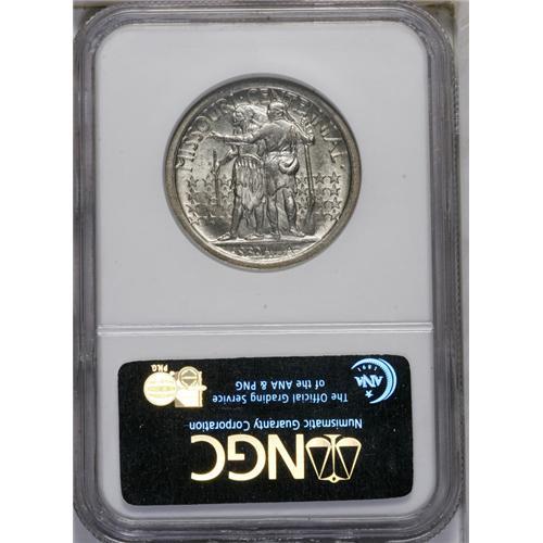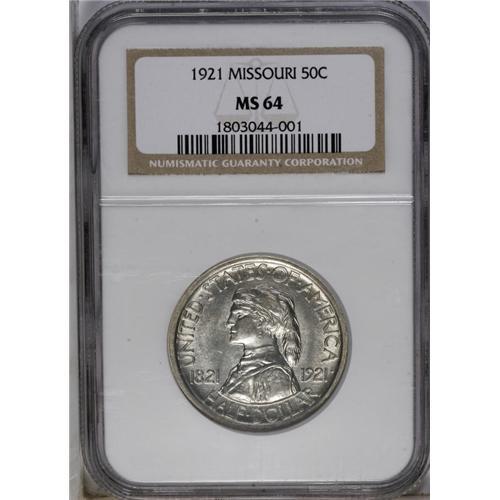 <B>1921<50C> Missouri MS64 NGC.</B></I> Both sides of this near-Gem example have the typical frosty silver luster that is usually seen. Each side also has some central weakness, again typical of this issue.