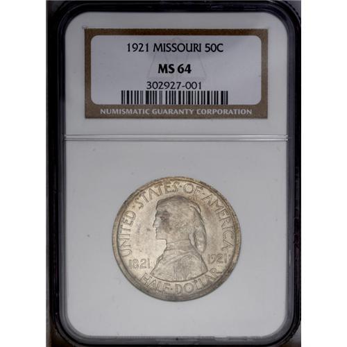 1921 50C Missouri MS64 NGC. Lustrous surfaces display 1921[50C] Missouri MS64 NGC.