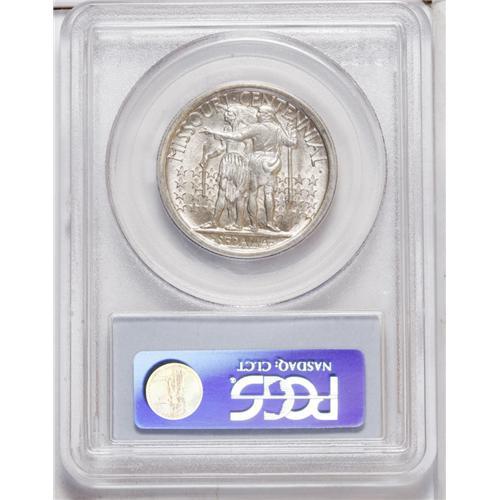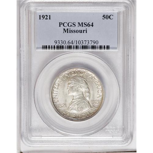 <B>1921<50C> Missouri MS64 PCGS.</B></I> Both sides are draped in rose-gold and gray patina. The fields have nice luster, and the devices have typical definition, though small abrasions are noted on the frontiersman's cheek on the obverse.