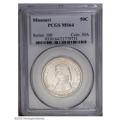 <B>1921<50C> Missouri MS64 PCGS.</B></I> A lustrous white coin with a minimally abraded surfaces. Overall, very pleasing.
