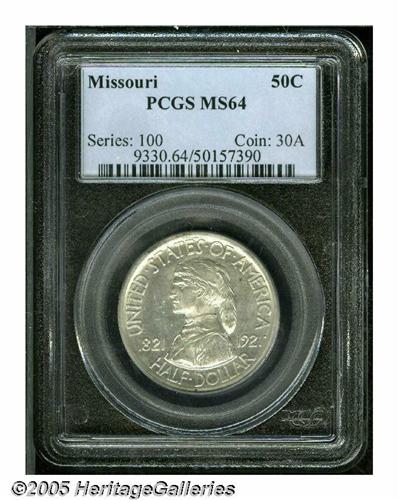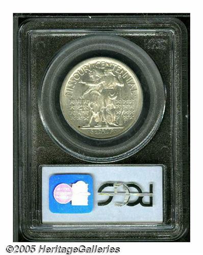 <B>1921<50C> Missouri MS64 PCGS.</B></I> Silver-gray surfaces display nice luster and adequately struck motifs. Grade-limiting marks are seen on the obverse portrait, and on the back and left arm of the reverse frontiersman.